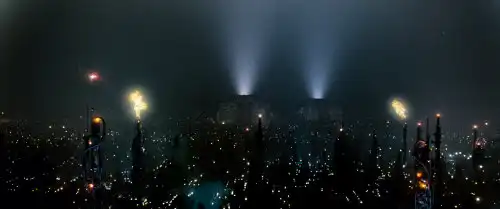 Работа на площадке сопровождалась тесным взаимодействием подразделений: арт-департамента, операторской группы, команды спецэффектов и художников по свету. Такое сотрудничество позволило выстроить единый визуальный мир, в котором каждый фрагмент имел смысл. От мельчайших вывесок и отблесков на мокрых площадках до масштабных панорам, собранных из миниатюр, — всё это стало результатом сложного симбиоза художественной идеи и инженерной смекалки.