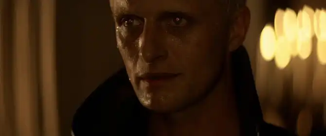Финальная конфронтация между Декардом и Роем проходит на крыше небоскреба в ливневую ночь, среди искр и обломков. Рой демонстрирует не только физическое превосходство, но и умение оценивать жизнь и смерть с философской высоты. Он спасает Декарда в неожиданный момент, вытащив его из гибнущей башни и предотвращая его гибель, тем самым показывая, что репликанты не лишены сострадания. Последние минуты жизни Роя наполнены печалью и поэтичностью. Его монолог "Я видел вещи, которых вы не поверите" — это медитативное признание того, что в короткой, но интенсивной жизни он пережил столько впечатлений, сколько многим не дано понять. Его слова "Слезы на дождю" (Tears in Rain) звучат как прощание с миром и как философское утверждение о том, что память и опыт уникальны и умирают вместе с телом. Рой умирает, вновь подчеркивая трагедию репликантов: они обречены испытывать человеческие чувства и умирать от ограниченного срока.
